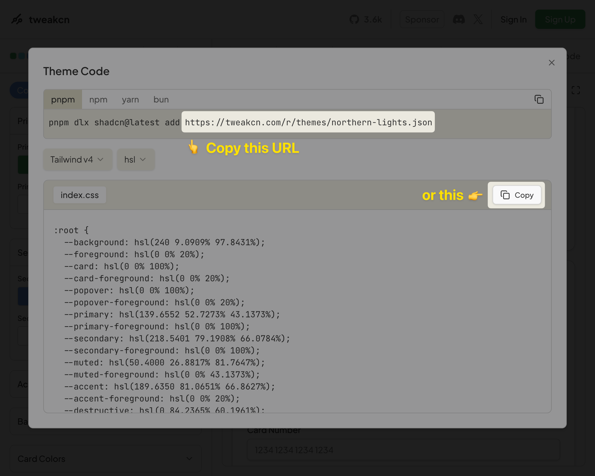 1. Visit tweakcn.com to select a preset or customize your theme visually